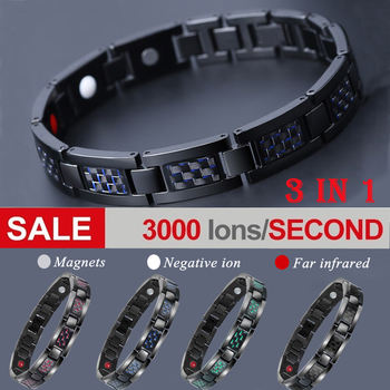 Blue Carbon Fiber Mens Health Energy 3 IN 1 Bracelet Bangle Twisted Magnetic Bracelet Stainless Steel Women Power Therapy Magnet