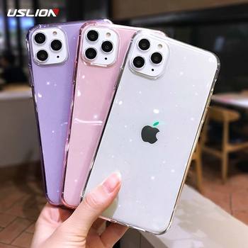 USLION Transparent Glitter Phone Cover For iPhone 11 X XR XS Max 7 8 6 6S Plus Soft TPU Back Case Shiny Cover For iPhone 7Plus