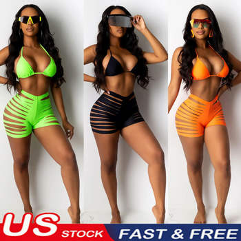 New 2020 Women Summer Sexy Solid Bikini Set Bandage Swimsuits Hollow Out High Waist Swimwear Bathing Suits Beachwear