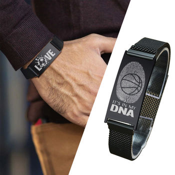 MEN STAINLESS STEEL STRETCH MESH ID BRACELET FOR UNISEX JEWELRY WITH MAGNETIC BUCKLE PERSONALIZED ENGRAVING FITS ANY WRIST