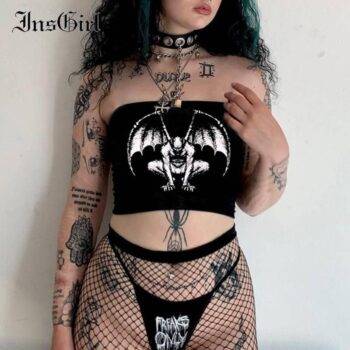 InsGirl Dark Gothic Demon Printed Camis Bra Women Harajuku Streetwear Grunge Strapless Crop Tops Y2k Emo Alternative Black Vest