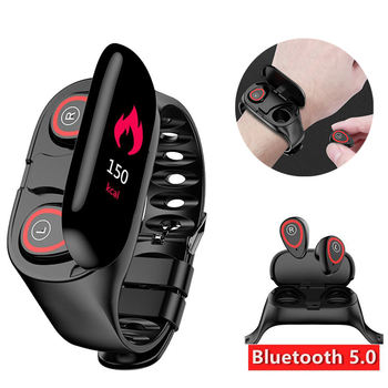 2 In 1 AI Smart Watch With Bluetooth Earphone Heart Rate Monitor Smart Wristband Long Time Standby Sport Watch Men