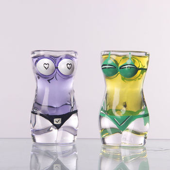 Sexy Bikini Lady Men Durable Double Wall Whiskey Glasses Wine Shot Creative Body Shape Glass Cup Glass Big Chest Beer Cup